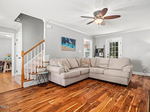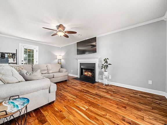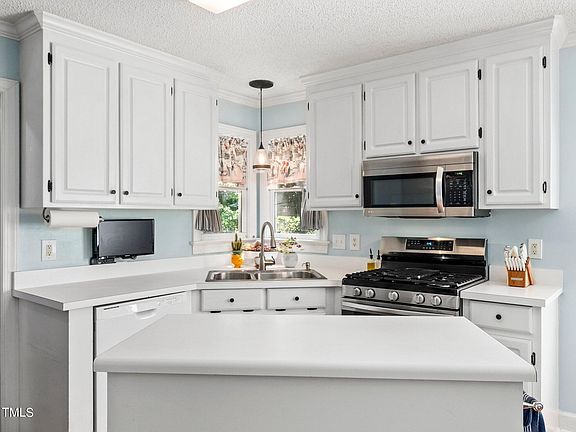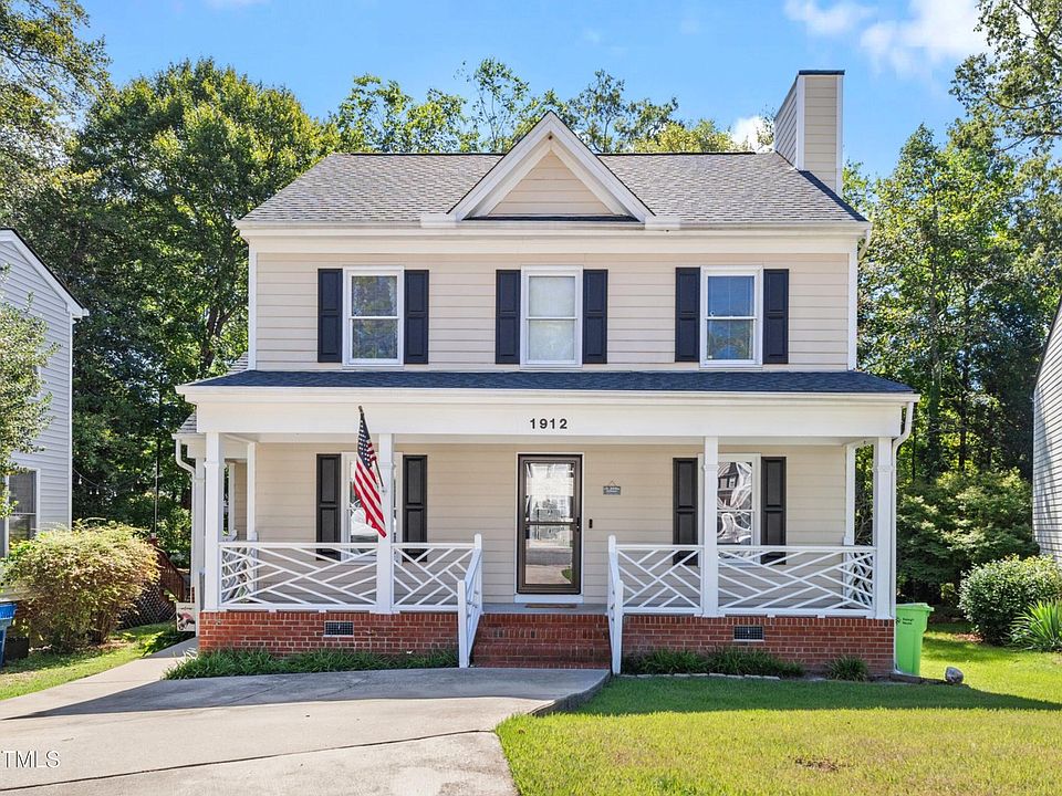 Welcome to 1912 Talamore Ct! This 3 bedroom single family home, nestled on a quiet cul-de-sac in one of the most convenient golf course communities just 15 min from downtown Raleigh. Just a stone's throw away from one of two community pools, scenic trails, tennis courts and a picturesque lake, this home also boasts a prime location with direct access to the lush 18-hole Hedingham golf course. Step inside to discover a bright and inviting kitchen, perfect for both cooking and entertaining. It features modern appliances, including a brand-new gas stove, ample cabinetry, and a useful island that serves as both a workspace and a gathering spot for friends and family. The adjacent dining nook is ideal for cozy meals, while the nearby versatile dining area can easily function as a playroom or home office. Guests will appreciate the updated utility room and stylish half bath, adding both convenience and charm to the home. Recent updates include durable 3/4'' real tongue-n-grove hardwood flooring throughout most of the first floor and an rebuilt expanded deck, perfect for outdoor gatherings and relaxation.Upstairs, the primary bedroom is a spacious retreat bathed in natural light, complete with two walk-in closets and an elevated en-suite bath. The luxurious spa-like shower, featuring multi-head sprays and abundant natural light, promises a rejuvenating start to each day. The recently updated secondary bath is both chic and functional, adding to the home's overall appeal. Beyond the neighborhood, this home couldn't be more convenient with groceries, dining and shopping options abound! The careful updates they've chosen to make and the quiet cul-de-sac make it a wonderful place to call your own. HVAC 2018. Roof 2019 - Whole House WATER FILTRATION system