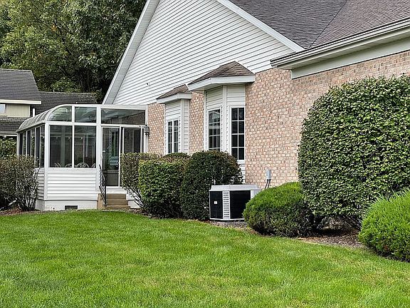 Outstanding Moughan custom built condo with many amenities. Spacious Gary Bryan custom kitchen with large eating area, built in desk and lots of cabinets. 3 bedrooms, 2 bathrooms and a sunroom on the main level with a 3 season room off the dining room. Vaulted great room with sky lights and fireplace. Dining room with custom built-ins. Main floor laundry. The condo is fully wheelchair accessible with lots of storage. Full finished basement with family room, 2 bedrooms and full bath.