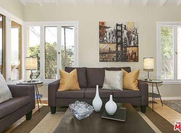 Quintessential Laurel Canyon Cottage perched above street level allows abundant sunlight to stream through numerous windows. Enter a screened in porch, reminder of East Coast beach cottages, and enjoy your morning tea, hang out, take a siesta or read a book . The open floor plan of living, dining and kitchen makes it ideal for entertaining. Want to have breakfast, lunch or dinner under the stars? The patio off the kitchen is a perfect for alfresco dining. Master en suite bedroom plus guest bedroom and hall bath complete this magical oasis. Centrally located minutes from the famed Sunset Strip, Hollywood Blvd or the Music and Movie Studios.
