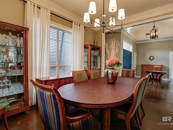 Don't miss this incredible opportunity to make this stunning 4-bedroom, 2.5-bathroom custom-built brick home in Fairhope your personal oasis! This exquisite residence features a spacious bonus room and a private courtyard, perfect for relaxation and entertainment.As you step inside, you'll be greeted by soaring tray ceilings and an expansive entry foyer that sets the tone for the elegance throughout. The formal dining room is ideal for hosting dinner parties, while the separate breakfast area and side entry doorway lead to a fabulous kitchen, complete with modern appliances and ample counter space.The living room, located at the back of the home, boasts a gorgeous fireplace and is bathed in natural light from the courtyard and rear patio, creating a warm and inviting atmosphere. On one side of the home, you'll find a luxurious primary suite with plenty of space to unwind, along with three additional bedrooms and a shared bathroom.This home is designed with practicality in mind, featuring scored concrete flooring throughout all living areas, including the kitchen and bathrooms. You'll appreciate the large closets throughout the home, a convenient half bath for guests, and a roomy laundry room.Step outside to the large private covered patio and fully fenced backyard, offering plenty of room for outdoor activities and gatherings. Or, enjoy the tranquility of your own private courtyard.Located with easy access to local schools, this home is just minutes away from the bay and downtown Fairhope, known for its amazing shopping, top-rated schools, and delightful restaurants. Plus, there's a park right across the street, perfect for dog walking or playing frisbee golf.Schedule a showing soon, as this fabulous home is sure to sell quickly! Buyer to verify all information during due diligence.