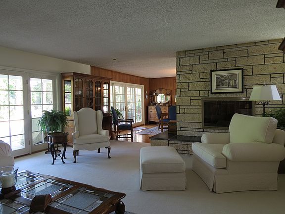 As you wend your way through this estate area of Northridge and at the end of a quiet cul-de-sac street you will find this elegant 4 bedroom, 3 bath home. Lovingly maintained for over 40 years, this 2,433 square foot home has put its best foot forward and anxiously awaits its new owner. A concrete circular driveway leads up to the double door entry. Once inside, you’ll find gleaming hardwood floors, plantation shutters and a wall of French doors that let the sun shine in. The stone fireplace with raised hearth is a dramatic focal point for the living room as well as the formal dining room creating a warm, cozy feeling on any a winter’s eve. The spacious kitchen has a pass through to the formal dining room, great for buffet dining, a breakfast bar and a dining area. The laundry room and 3rd bathroom are conveniently located just off the dining area. The master suite with plantation shutters offers up a dressing area and private bath. Three more bedrooms are spacious, with plantation shutters and the adjacent full bath has dual sinks. Step outside and you will think you have been transported to a lovely resort. Situated on over 16,400 square feet of terra firma the mature landscaping provides beauty and privacy. On a summer’s day the covered patio offers a shady retreat from the noon day sun and then a refreshing dip in the sparkling pool. Central heat and air and dual paned windows complete the picture on this impeccably maintained home.