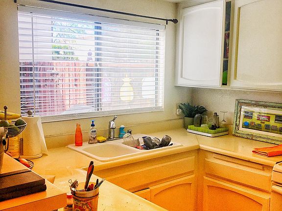 2 story Townhouse. Corner unit, share one wall with quiet neighbor. Unit in very back of complex. Very quiet and private area. Two bedrooms with full baths upstairs. Master bedroom has walk in closet and wall closet. Vanity outside of bathroom which has toilet, tub/shower. Balcony has sliding glass doors that faces neighbors. Bedroom 2, has full bath, large wall closet with large window view of patio and pool area. Kitchen with windows that look out onto patio. Sliding glass doors that open out to patio. Living room has two large windows that look onto patio and makes the room seem large. Small dinning area, small wet bar, nice size living room with vaulted ceiling and fire place. Two car garage with some storage and washer/dryer hookups. Available for viewing by appointment only. One year lease. Tenant responsible for all utilities. Tenant responsible for patio area maintenance. Unit perfect for two people.
