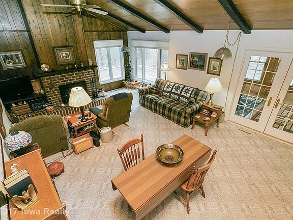 Great opportunity to purchase this secluded acreage that includes 15 acres of timber and Raccoon River frontage. This unique walkout split-level plan has 2 bedrooms and 2 baths on the upper level. Large great room with vaulted ceilings and a wood stove, bright kitchen and three-season porch overlooking the timbered valley. The lower level is also finished with a 3rd bedroom, bath and plenty of room for storage. Home has been well maintained by the original owners. 12.5 acres are in the forest reserve program for reduced property taxes. Sellers see deer and turkey on an almost daily basis.
