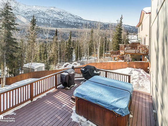 Bluff living in desirable Eagle Crossing Subdivision! Unobstructed mountain views in an easy commute location to JBER, Anchorage & downtown Eagle River! Enjoy miles of lit sidewalks & nearby playgrounds or walk down to Eagle River from your own back yard! This home has been meticulously maintained & updated through out & features a beautifully landscaped yard w/decking, fire pit & more! SEE MORE.. Upgrades and Maintenance include the following: Fresh interior paint 6/14 and 7/16 New Malarkey Highlander 35 year 110 mph shingles installed 9/14 New flooring installed throughout house 7/14 Dansk engineered hard wood floors (Jamaica Birch Rare Coin) Lees Carpeting Invincible Rockwell kitchen floor Stainless Steel appliances (LG and Kenmore) installed 8/14 Upgrade Fireplace, mantle and hearth 7/12 564 High Output Greensmart Fireplace Remodeled and Upgraded all bathrooms Master Bath remodeled 6/11 Granite counter top and window sill Frame-less glass shower Upgraded tile surround and floor Light and fan fixtures Upstairs and Downstairs Baths Tile flooring and shower surrounds Solid surface counters Light and fan fixtures Re-paved driveway and RV parking area 6/09 House painted 5/09 Back yard landscaping done Summer 2007 Fire pit added Summer 2013 Re-modeled Kitchen 5/03 Solid Surface counter tops Rustic Hickory cabinets by Prestige Custom built in book shelf in den Custom built in closet organizer in master bedroom walk-in closet Back deck and balcony have Trex decking and rail tops Front porch redesigned and built with Trex decking and rail tops 50 gal Hot water heater new as of 3/13 Ceiling fans in all bedrooms and formal living room