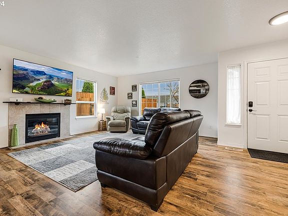 Welcome to this beautiful contemporary 3-bedroom, 2-bathroom home, built in 2000, and nestled in a peaceful and friendly neighborhood. With its spacious design and thoughtful upgrades, this home offers the perfect blend of comfort, style, and convenience. Step into the large, open living space, flooded with natural light, where beautiful laminate floors flow seamlessly throughout the home. The updated kitchen and modern light fixtures add a fresh and inviting feel to the space. The primary bedroom is a private retreat, complete with a ceiling fan and sliding door that opens to your serene backyard—a perfect spot to enjoy your morning coffee while surrounded by the natural beauty of the Pacific Northwest. The home’s major updates ensure long-term peace of mind, including a new roof installed in July 2021 and a fully updated HVAC system with AC, installed just last year (July 2022). The new furnace with AC ensures year-round comfort, electric awning in backyard installed 3 months ago, while the irrigation system in both the front and back yards makes maintaining your lush landscaping easy and efficient. The location couldn’t be better. This home is within a short distance to a highly rated local elementary school, and you’re just a short drive from both Canby and West Linn, offering access to shopping, dining, and more. Enjoy low HOA fees, which contribute to the maintenance of a private green space reserved for residents, creating a community-centered atmosphere while preserving the neighborhood’s quiet and natural charm. Don’t miss this opportunity to own a move-in-ready gem in one of the most sought-after areas in Oregon City. Schedule your tour today and experience the perfect balance of contemporary living in the heart of the Pacific Northwest.