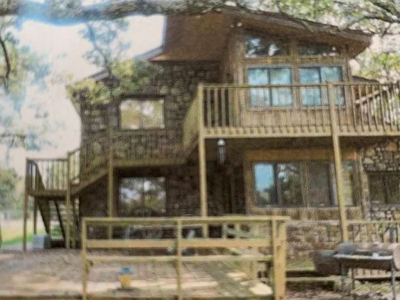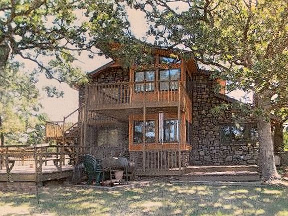 Native stone home, 2 story, built in 1988. Has access to water, running along length of property. Nestled between Okmulgee Lake & Dripping Springs Lake. 3100 sq ft, more or less, on 6 beautiful secluded acres, according to tax records. 44 x 36 ft shop. 4b 2b, has sunroom plus study, large walk-in closets. Large 9ft rock fireplace w/ blowers. Large Utility with an abundance of storage. Large Family room, upstairs bedroom & sunroom have cathedral ceilings. Balcony overlooks family room. Custom ceiling fans, sunken rock tub & shower in master bath. Breakfast room w/ lots of windows facing West to see the beautiful sunsets. Kitchen has custom oak cabinets & doors, 9ft rock front bar, large pantry, Jen Air downdraft stove/oven. Dining area has large built in hutch & desk in kitchen. Home has Mexican clay tile with a S/W flair. 2 car garage 23 x 21 w/heat & air in garage. New roof in 2018, new heat & air upstairs 2019. 500 gal propane tank. Over 1000 ft decking. Additional 17 acres can be purchased upon inquiry. Call 918-724-7720.