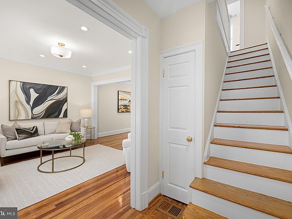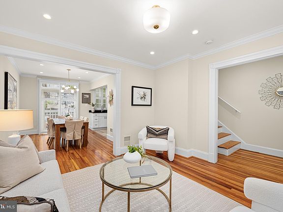 Tucked away on a quiet street in Burleith, this impressive, renovated home offers a peaceful lifestyle just steps from Georgetown and walkable to Downtown D.C. A front garden adds curb appeal and a welcoming touch. Burleith's motto is "A Village in the City" making it one of DC's warm and neighborly communities. Built in 1916, the home has a refined elegance and features heart pine floors, classic moulding and elegant plantation shutters . The inviting entryway includes a large coat closet for added functionality and storage. The main level offers an open-concept layout that seamlessly connects the living, dining, and kitchen areas—ideal for making lasting memories with friends and family. From the spacious dining room, step out onto a deck that leads to a private, one-car parking space below. A conveniently located powder room completes this floor. Upstairs, you’ll find two well-proportioned bedrooms, each with large storage closets and a hall bathroom. The spacious primary bedroom, located at the front of the house, has an alcove that can be used as a sitting area or home office. Beyond the powder room, stairs lead to the lower level, which includes abundant closet space, a laundry room with a utility sink, a full bathroom, and a spacious family room with tile flooring. This level also provides direct access to the rear parking area. Pella windows throughout first and second level.
