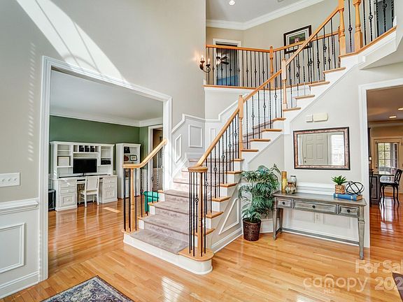 Do not confuse this with the model home! This expansive design boasts 5 bedrooms, 4 full baths, a bonus room, and a screened porch nestled on a densely wooded property. The lower level features ample hardwood flooring, built-in bookcases, stainless steel appliances, abundant granite countertops, and upgraded 42-inch cabinets. The generously sized primary bedroom and bath are bound to captivate. Additionally, indulge in the tranquility of the neighborhood while unwinding in the hot tub on the deck. With top-notch schools and Union County taxes, this residence is the epitome of perfection.