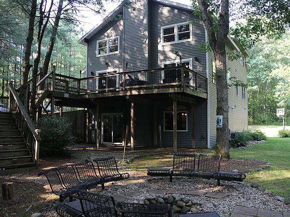Wow! What a great place to call home! This custom built home has many unique features that are tastefully done- all with a great attention to detail. Custom Features include: Vaulted Ceilings, Slate Tile, Hand Scraped Harwood Floorings, Walk in Pantry, Custom Doors and Trim, Main Floor Laundry, Kitchen with a snack bar, Huge Great Room, 2 Awesome Fireplaces, Multiple windows over looking the huge decks and Firepit with built in seating, Huge 2.5 Acre wooded lot, Built in Bar Downstairs with Working Keg System. The Primary Bedroom completes the upstairs loft and is exceptional with large Walk in Closet, primary bath has heated Jacuzzi Tub and Radiant Floor Heat. The Custom built Pole Barn is 1.5 stalls for all your extra Toys and has a Work Shop and a large bump out for more Storage. All 3 Bedrooms have large walk in closets. This home is in the Bella Pines Community. Located near the end of the cul-de-sac with Private Paved Road, community surrounded by 500 Acres of State Land with a Walking Trail for your outdoor adventures. Underground Sprinkling and Plenty of Parking for your guests. Custom Stone Patio outside the walk out basement. The 2 Decks have Decorative lighting. Fiber Point Broad Band Internet. Water Softener owned and new in 2018. Well Pressure Tank replaced in 2022. The Garage has Hot and Cold Water. Pool Table and all wall Mounted Tv's included. This home has so many extra custom features you just have to see it!