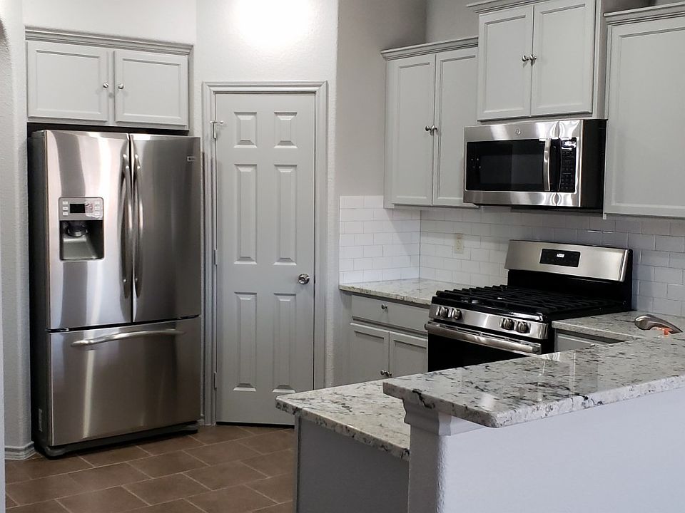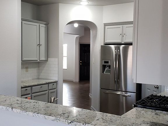 Adorable home with lots of updates! Family room is huge and boasts a stacked stone FP with gas starter; check out the gorgeous kitchen with gray cabinets and granite counter tops, walk in pantry, gas cooktop and fridge; NO carpet - just tile and beautiful wood-like vinyl flooring throughout; master bedroom is spacious and the master closet boasts a fantastic closet system; secondary bedrooms are separate from the master; large separate utility room; formal dining or bonus space; large covered patio for entertaining! Easy access to highways, groceries, shopping and entertainment! Community pool and playground are steps away! Contact agent for application information.