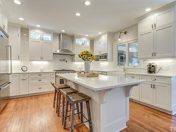 Completely renovated home in one of Raleigh's most desirable locations. This corner lot home is within walking distance of shopping centers. This 5 bdms, 3 1/2 bath home features an open 1st flr with a kitchen designed for entertaining. Custom cabinetry with commercial Viking appliances, open flrpn with a large family rm w/fireplace. Hardwood flrs on 1st and 2nd flrs and plantation shutters. Spacious bdrms and 3rd fl guest suite. Scrn porch w/an open deck and flagstone patio w/ wood burning fireplace.