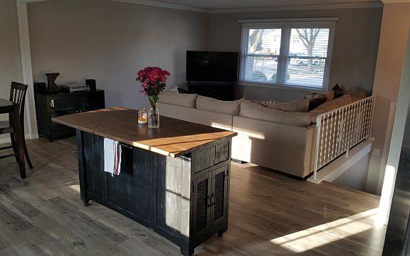 New price - motivated to sell! MAIN FLOOR NEWLY REMODELED IN 2019, this spacious split level with attached two car garage has all new updates to the main level this year: new floors (LVP and carpet), baseboard trim, crown molding, tub/shower, and doors. There are 3 bedrooms, with a full bath and a 3/4 bath en suite. New stainless steel appliances in 2016. This home boasts an open concept with a brand new kitchen island. The back deck is spacious enough for a large patio set and grill. The large backyard is private, with tall trees and a small creek to look out on. The roof was new in 2012; New furnace and air conditioner in 2009. This home is less than a 5 minute drive to restaurants and stores, and is in walking distance to Hempstead High School. It is situated at the end of a quiet street with hardly any traffic.