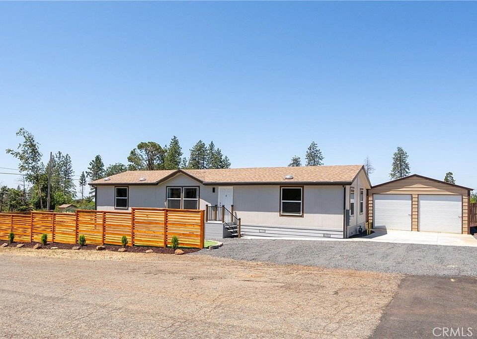 Do not miss your opportunity to own this brand new and spacious manufactured home situated in the Town of Paradise. This home is privately tucked away in a quiet and desired location. This home is close to freeway access, schools, shopping centers, restaurants, churches, and convenient stores. This home features 2 bedrooms, 2 bathrooms and an OVERSIZED DEN that may be used an additional bedroom, office, and or gym. This home boast just under 1500 SQFT of living space, and includes beautiful granite counter tops, granite backsplash, and beautiful flooring. The exterior features a brand new 20x20 shed, garage, or workshop. The front yard has a brand-new wooden fence, with beautiful rock/landscaping, and low maintenance turf.