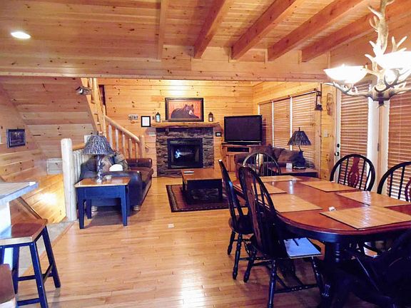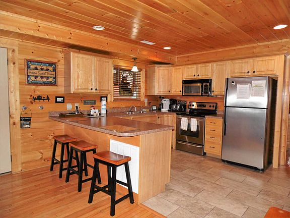 Relax with family and friends in this fully furnished luxurious 4-bedroom, 3 bath cabin that sleeps 12, in Covered Bridge Resort. Step in to a great room that includes the kitchen, dining room and living room with fireplace and large screen tv. The spacious kitchen is fully equipped with stainless-steel appliances, cookware, & tableware. This level contains a guest bedroom and bath. The 2nd level contains a loft area with a media center. The master bedroom suite is on this level. It contains a fireplace, jacuzzi tub and private bath. The basement contains 2 more guest bedrooms and bathroom. The game room features a pool table, arcade game, poker & a jukebox. Two decks provide plenty of room to relax and enjoy the view or soak in the new hot tub. Please provide pre-qualification letter or proof of funds with all offers. Square footage provided from tax records and is deemed to be reliable, but not guaranteed. As with all real estate transactions, you should verify all information independently, buy title insurance, home inspection, and all other applicable inspections. Equal Housing Opportunity.