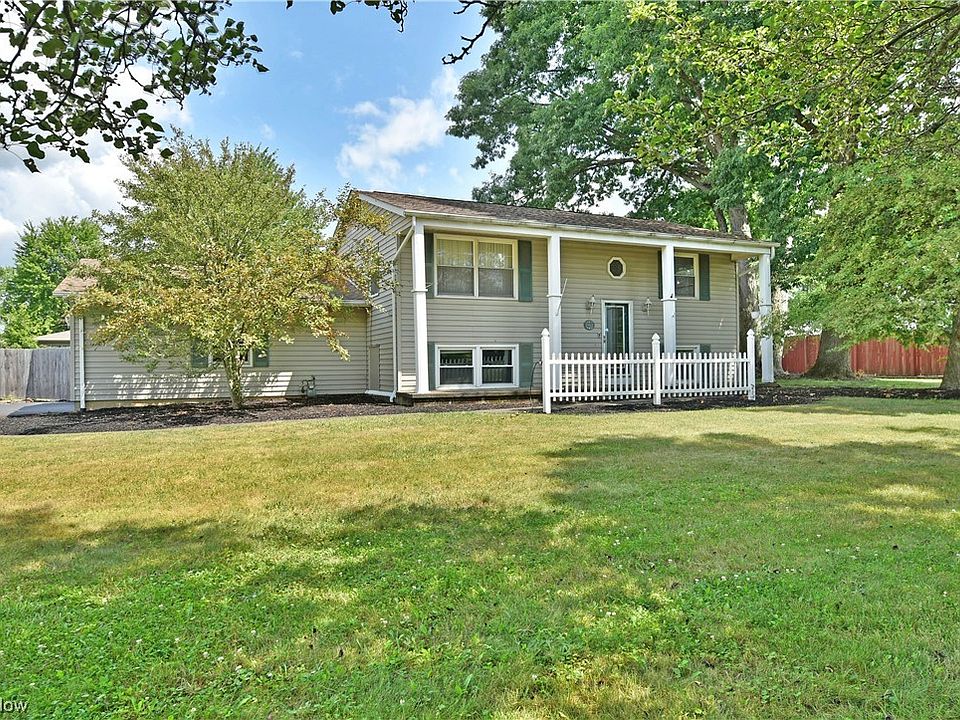 Don’t sleep on this expansive Mineral Ridge bi-level offering up huge potential with its two floors of finished living space and a large, fenced-in backyard complete with a relaxing pool! The prominent corner property boasts plenty of curb appeal with its tall pillars that line the front of the white picket lined entry way. An attached two car garage makes for a quiet, side street entry while an easily finished sunroom overlooks the substantial brick patio. A decorative, glass front door overlooks the stained wood staircase that is trimmed in wrought iron handrails. Downstairs, the tastefully updated floorplan includes a tile lined kitchen that joins both a robust dining room, half bath and spacious family area with fireplace. Laundry services and utilities complete the floor along with a large bonus room for easy home office space. Upstairs, the hardwood filled living room branches away into a quartet of bedrooms as they accompany a fifth potential, currently configured as a walk-in c