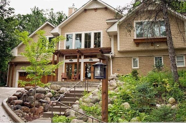 Unbelievable setting! This private hilltop sanctuary is located only blocks to Cedar Lake. It is perfect for entertaining. This home has many unique features including a stairwell from a reclaimed bridge, heated concrete in the great room, a "cabin room" for home getaways, a home theater, guest suite and more.