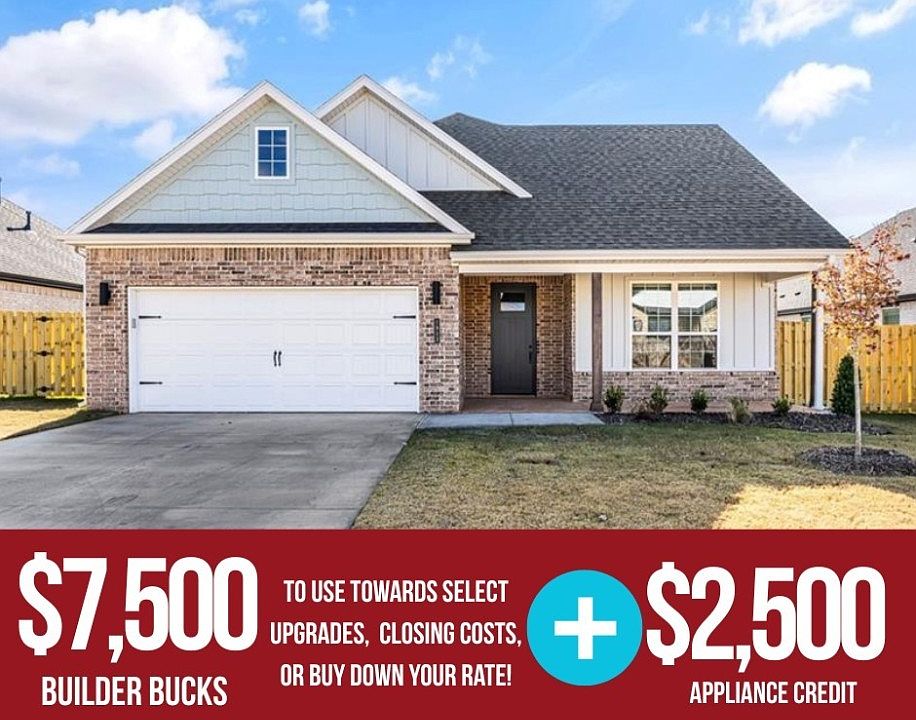 For a limited time, Lower your interest rate with $7,500 from the builder + $2,500 appliance allowance + up to 4k in closing costs from select lenders. For a total of up to 14K with lender incentives. Fence, blinds, and gutters are all included.