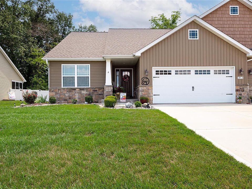 Offered is a beautiful 3 beds, 3 baths, 2 Car Attached Garage villa in Windsor Way. The main level has engineered hardwood floors throughout, with ceramic tile in bathrooms along with glass shower doors. It has an open floor plan with vaulted ceiling, gas fireplace. Large island with granite counters, custom craftsman cabinetry. The great room consists of the kitchen, dining, and living room. Main floor laundry, covered screened in patio. Partially finished basement with family/rec room, bedroom w/ egress window, full bath & unfinished storage area. The unfinished storage are has luxury vinyl plank flooring on the majority of it. All Stainless steel appliances stay with the home. The backyard has been extensively landscaped with shrubbery and a lot of perennial plants that will add color to your backyard all summer long. Contact your favorite realtor today to schedule your showing.