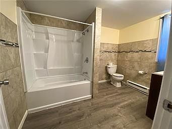 Don't miss out on this beautifully updated 2 bedroom apartment! Featuring gorgeous hardwood floors in the bedrooms and living room, and new wood-look tile in foyer, kitchen, bathroom and rear mudroom. The large bathroom has glass tile accents throughout. Large newer windows allow in lots of natural light and save on your heating and cooling costs. Window a/c units, off street parking and a small, shared fenced in yard with shed for storage finish off this hard to find gem! No pets. No smoking. Credit, eviction and background check. Monthly income must be 2x rent. 3 months of paystubs required. First months rent and one month security deposit due upon signing. Landlord takes care of snow and lawn. Garbage, sewer and water included.