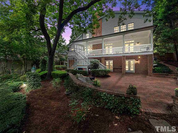 Enviable privacy found here in the heart of Raleigh! Relax in this southern country estate lifestyle while on your veranda overlooking trails and gardens in a perfectly secluded park like setting. Comfortably elegant with grand foyer, expansive master, bedrooms w/full baths, 4 fireplaces, french doors, floor to ceiling windows, beautiful hardwoods & moldings, kitchen w/ marble island, stainless, gas stove top, double ovens all surrounded by porches, verandas, patios, fountains & private grounds!