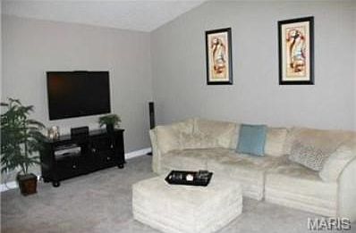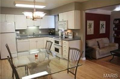 BACK ON THE MARKET at no fault of the sellers! The pride in ownership really shows in this 3 bedroom, 2 full bath home! Beautiful hardwood floors flow through most of the main level. The spacious entry foyer opens to the bright family room which features cathedral ceilings and tall windows. Your recently updated kitchen boasts new cabinets, corian countertops, pantry, nice appliances including a double oven, breakfast bar, a convenient writing desk and hardwood floors. The hearth room is sure to win you over with the gas fireplace, built in bookshelves, cathedral ceiling, plant shelf with accent lighting, and access to the large covered patio. Master bedroom suite has beautiful crown molding and an updated full bath. The lower level offers a finished rec room/family room on one side, and a workshop and storage area on the other. Sellers are offering a one year home warranty for you. Brokered And Advertised By: Real Living Gateway Real Est. Listing Agent: Shannon Flamm