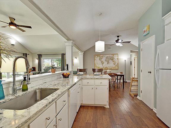 Lovely 1-story BRICK RANCH w/many updates! A 24' x 14' addition to home in 2016 offers an open floorplan between kitchen & family room. FR has accent lighting & lots of natural light. Brick accent on FR wall is an added plus! DETACHED 4-car GARAGE measures 24' x 32' & has it's own A/C unit, too! Home is situated on a BEAUTIFUL wooded lot w/fenced backyard. There is also a 1 car garage attached with an insulated new garage door. In 2016 a rear deck, exterior front door, & door from kitchen to garage were replaced. To top it off, dual pane, double hung windows were installed thruout home! A great savings to heat & A/C bills. Quartz kitchen countertops, engineered hardwood floors, garbage disposal & faucet have also been updated. Master bath shower has been tiled, and sink, cabinet, & mirrors were changed out along with adding sliding barn door to MBR. Ceiling fans in bedrooms, family room, & dining area. Exterior trim was painted in 2019. Detached garage was painted in 2017. Home is under termite bond with Titan Exterminators. Crawlspace has vent fan and vapor barrier. No HOA.