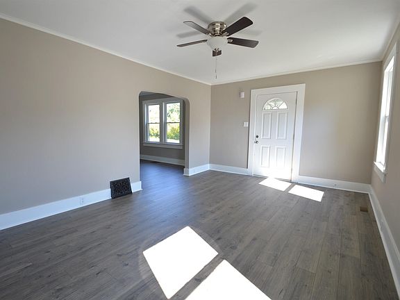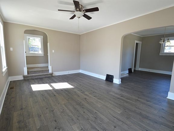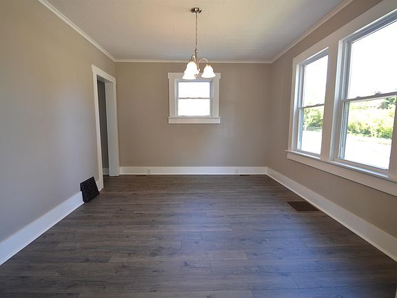 Super cute move in ready home! Nice layout with large living room and formal dining room. All freshly painted walls, trim and doors. New flooring throughout, and updated kitchen with painted cabinets and stainless appliances. 3 large bedrooms upstairs all with ceiling fans and overhead lighting, along with the full bath that has also been updated with new flooring, vanity, lighting, toilet and tub surround. Large very clean unfinished basement great for extra rec/hobby space and provides nice storage space. Nice side yard provides great space for outdoor activities, fire pit and storage shed. This is a great opportunity at a great price!