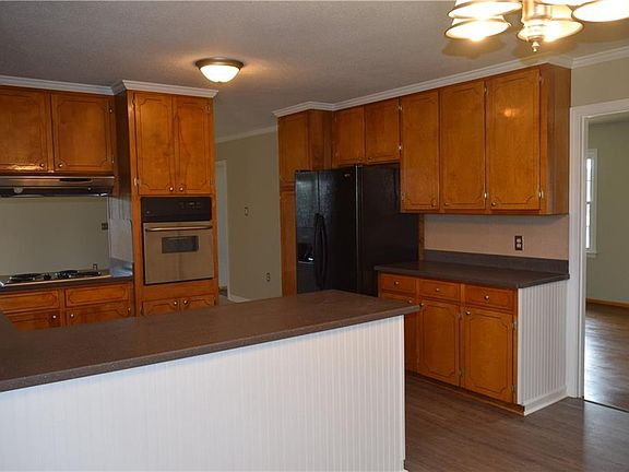 This is a very spacious home with an extra large great rom with wood burning fireplace, kitchen has new flooring and all appliances remain, large laundry room hardwood floors in living ad dining and all bedrooms, ceramic in greatroom, and baths. Two lots partially fenced, other lot goes almost to home in back of this one storage building belongs to this house. Newer window solar system power is average of $110 per month