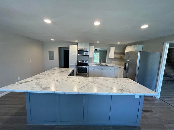 Tastefully updated, this all brick ranch offers 4 bedrooms and 2 full bathrooms. The kitchen is open and bright and includes all new appliances. Exposed brick in the family room adds to the charm of this home. The two car attached garage leads to the mud/laundry room off the kitchen. Corner lot with new drain tile system around home and cute covered back porch make this one you don't want to skip over. Appraisal on file for $170k