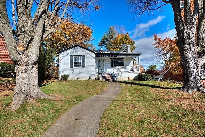 Brick Rancher located in well established Monte Blue Manor. Walk or ride you bike through the wide streets and enjoy view of the Blue Ridge Mountains. This 3 Bedroom / 1 Bathroom single level living offers charm galore. An updated large covered front porch welcomes you to this home. Enjoy quite evenings in Living room with large picture window and red brick fireplace and built in book shelves. Open concept Dining Room and Kitchen perfect for entertaining. Large Rear Deck and large nearly level lot that backs to alley allows for off street parking. Hardwood flooring throughout. Basement is perfect for workshop or storage. Notables: Newer Roof, Newer Hot Water Heater, Furnace Rebuilt 2 years ago, Front Porch updated 2021, Electric fireplace insert.