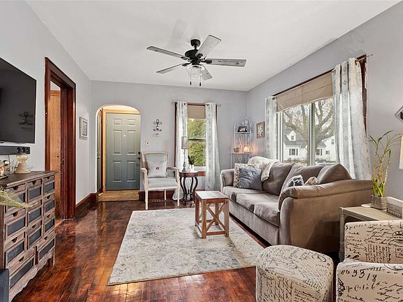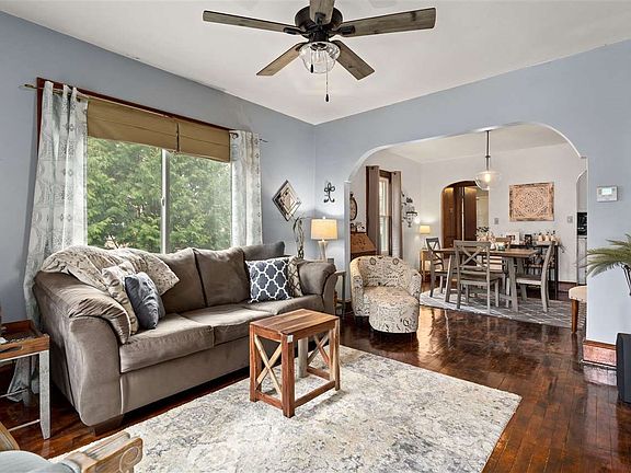 Charming character home with beautiful hardwood floors in the living room, dining room and bedrooms. Arched entry ways, kitchen with crisp white cabinets with soft close doors and drawers, granite counter tops, tile back splash and floors. Renovated bathroom with tile shower. Lower level offers a fun place to entertain with wet bar and modern fireplace. A full bath has been added, complete with a jetted tub. Quaint backyard. Located within walking distance to Erb Park and Pool, shopping, restaurants, schools and more. What a great place to call home.