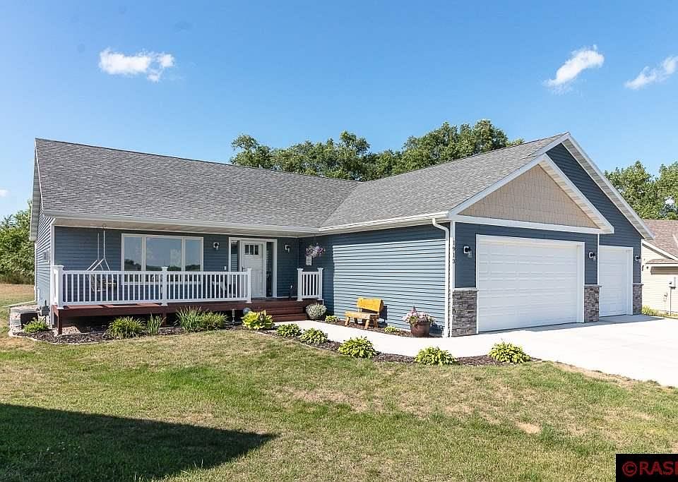 Amazing one-owner rambler in desirable St. Peter location! The curb appeal will surely draw you in and what awaits you behind the front door, will not disappoint. Spacious front entry with coat closet and stylish open stairwell opens up to an expansive vaulted ceiling enveloping the main floor living room, informal dining area, and gorgeous kitchen. The corner gas fireplace with rustic stone accent anchors the living room and makes for a cozy place to enjoy the cooler weather evenings. Durable hard surface flooring flows seamlessly from the dining area into the kitchen - easy to clean! This kitchen is the one you have been looking for - tons of cabinet space, corner pantry, sleek slate appliances, enormous center island, modern lighting, and wiring in place for under cabinet lighting. The large main floor Master Bedroom offers a large walk-in closet and private 3/4 bathroom with double vanity. Completing the main floor is a second bedroom and full bathroom as well as main floor laundry off of the garage. The lower level is awaiting your finishing touches of the large family room, two additional bedrooms, and a stubbed in full bathroom. There is also a mechanical room and storage areas. Attached 3 stall garage has gas line run for future heater as well as a floor drain for easy clean-up. Additional exterior amenities include ample green space, and a comfortable front porch.
