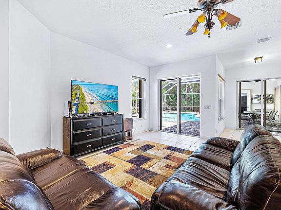 Enjoy extended golf course views from this stunning Lakefield West estate with 5 beds, 4 baths, and a 3-car garage. Recent updates include a new roof (23), exterior paint, driveway pavers, pool deck, and more (see documents for full list). Inside, neutral tiles illuminate the living spaces. The kitchen boasts 42' wood cabinets, granite countertops, and a lovely backsplash. Newer stainless steel appliances complement the spacious breakfast area and family room. Bedrooms offer versatile 3-way split plan, with the one spare bedroom having a private en-suite and another perfect for an office/den. The master retreat features dual walk-in closets, sinks, a generous shower, Roman tub, and private water closet. The home is generator ready and equipped with accordion shutters for peace of mind