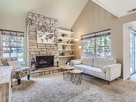 Attractive 2 bedroom 2 bath townhouse with 1208 sqft of living space. As soon as you walk in you will fall in love with the vaulted ceilings, stone fireplace and open living room and dining area. The large kitchen features stainless steel appliances and lots of natural light from the sliding glass door that opens to your fenced patio. Perfect for grilling or just relaxing. Also located on the main floor is a large bedroom, full-size bathroom and the washer and dryer. The upper level loft offers a private master retreat with a spacious full-size bathroom and a large walk-in closet. There is a detached garage plus 1 reserved space just steps from your front door. The complex is located on the beautiful Heather Ridge Golf Course. Within walking distance of your front door are parks and walking trails such as Jewell Wetland Trails and Utah Park which has an indoor swimming pool and tennis courts. A short drive and you will be enjoying Cherry Creek State Reservoir & State Park and many restaurants.