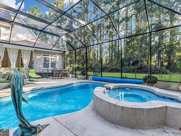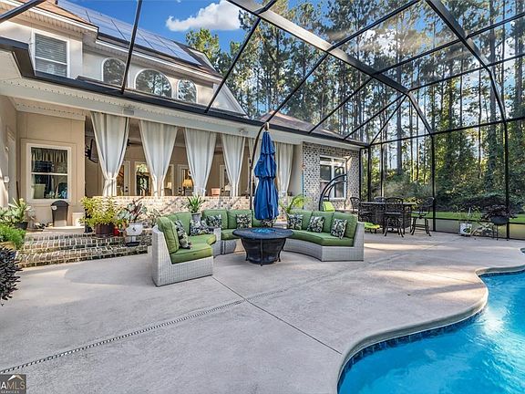 Welcome to this elegant and impressively custom designed executive home located in THE BLUFFS Richmond Hill. 1.75 acres. 5 beds w private baths. 2 half baths. 4855sf. Private backyard oasis features enclosed pool w waterfall, hot tub, covered patio and barbeque area. Custom entry doors open to a architectural splendor with carefully designed decorative tray ceilings in foyer, main bed, dining and formal living room. Gourmet kitchen boasts Viking gas range w additional wall oven, open to family area with cozy gas fireplace. Surround sound throughout. Main suite offers spa tub, dressing closet and sitting area & opens to outside patio. Enjoy entertainment upstairs complete with wet bar, theatre room and balcony. 350 galloon propane tank. Solar panels with back up battery for 3 days. Community tennis courts, playground pool. Convenient to new Richmond Hill schools, marinas, downtown Savannah, airport and Hyundai plant. Schedule a private showing to see all the details.