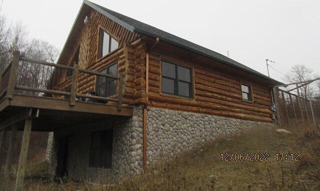 This full log home, with a walkout basement, is located on a large lot, in a semi-private location. This may be that home you have been waiting for. Due to Trashout not being completed, a Hold Hatmless must be signed before anyone enters the property. All contracts and offers are subject to final review and approval of seller, all offers or contracts are not binding unless the entire agreement is ratified by all parties