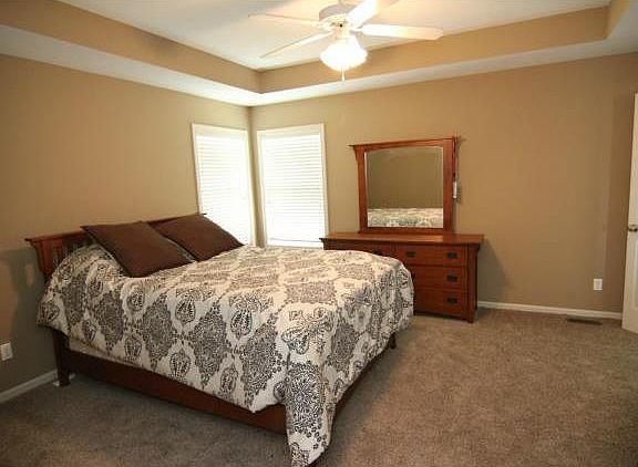 Dynamic entry features wide staircase & soaring vaulted ceilings! Open & Impressive Raymore home..no cookie cutter here! New carpet & interior paint in 2015. Features include: massive 3 car garage, finished lower level/Family Room/Media Room with bath and large Bedroom sizes throughout! One-Owner, well cared for home - least expensive home in desirable Timber Trails! Just blocks from everything! Wonderful subdivision pool...a must see turn key opportunity in the Ray-Pec school district.