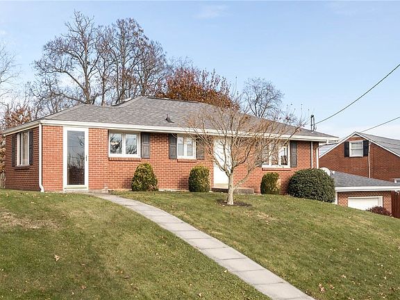 Sitting on top of the World! Welcome to the neighborhood. The sunsets are a beauty to behold and the unobstructed view is a coveted feature in Western PA. This solid brick Ranch house has been well loved and maintained throughout the years. The main living level features a spacious living room, two bedrooms and a full bath. The eat-in kitchen offers space to visit and assist with homework while prepping for the meals. The lower level has been finished to include a family room with a fireplace (the current owners never used for wood burning) A bedroom with additional full bath. Laundry room and pantry for your convenience. Lots of storage space and a single car attached garage makes this home complete! Trinity Schools. So, so close to the interstate, mall shops, restaurants and the Wild Things baseball stadium!