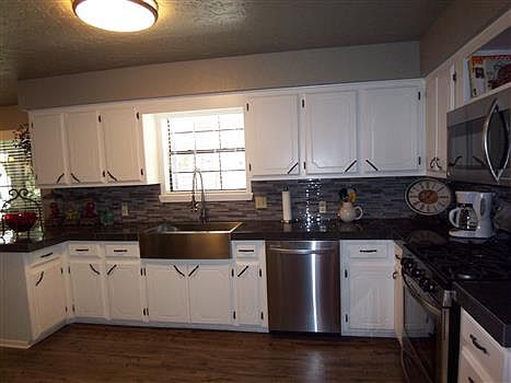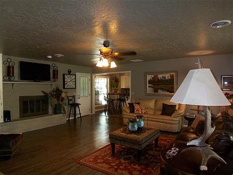 Lovely updated 3 bedroom brick home on corner wooded lot. Large living area with gas log fireplace. Updated kitchen with walk-in pantry and stainless steel appliances. Tons of storage throughout. Outdoor kitchen and patio area. Two storage buildings with new wood fencing and sprinkler system.