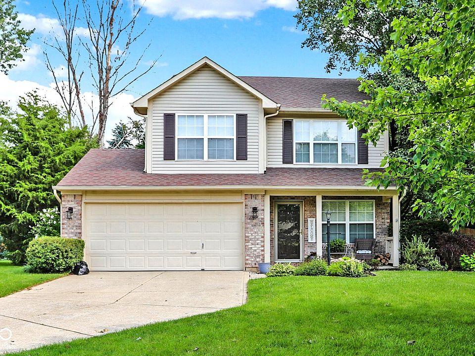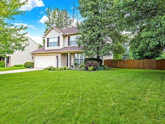Beautifully maintained three-bedroom, two-and-a-half-bathroom home with a loft in the heart of Noblesville! This charming residence features a welcoming covered front porch, ideal for enjoying the outdoors while watching the children play in the quiet cul-de-sac. Upon entering, you'll be greeted by a spacious Great Room that seamlessly flows into the Kitchen and Breakfast Room. The Kitchen features stunning new butcher block countertops, stainless steel appliances, a custom tiled backsplash, and a new sink and disposal. Additional updates include a new vanity top in the main level half bath, updated faucets throughout, and new carpet in the Primary Bedroom. Step outside to discover your own private oasis with an oversized paver patio, full privacy fence, and mature trees. The home backs up to a generous neighborhood common area, providing extra privacy. Conveniently located near shopping, dining, schools, and major interstates, this home offers both comfort and accessibility. Don't miss the opportunity to see this exceptional property!
