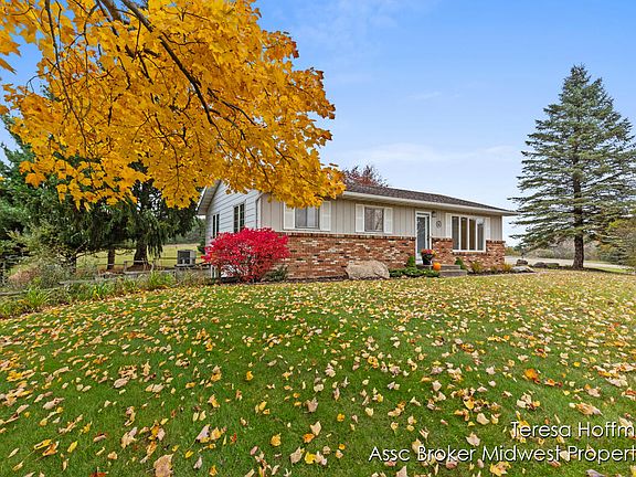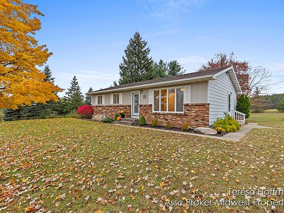 This move-in ready country home offers stunning views from its high hilltop location. Freshly painted walls and refinished hardwood floors, this charming home features 3 bedrooms, 2 bathrooms. Situated on a spacious 4.25-acre lot, the property includes a large pole barn with cement floors and 220 electric, a barn wood office, and two additional outbuildings perfect for housing animals. The newer 2021 gas furnace/central air with energy efficient air to air heat pump ensures comfortable living. The living room seamlessly flows into the dining area, providing beautiful views through the large sliding doors. The finished basement offers versatility, currently set up for a hair salon but can be transformed into a beautiful living space with daylight windows and ample storage.