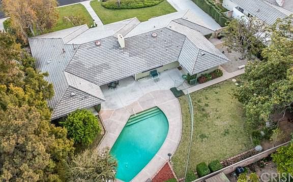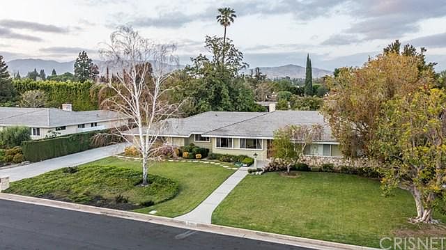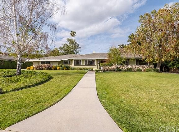 Chateau Highlands sprawling executive single story pool home has 4 bedrooms and 3 baths with over 3000 sq ft on 17,500 sq ft private lot! This is the land of large sprawling lots and custom delightful homes! This Mid Century Modern Ranch home has 124 ft wide lot with nice center walk way and private porch area. Light and bright inside with walls of glass and 2 very traditional back to back fireplaces. These custom fireplaces are massive statements, so much charm and character. Elegant living room with walls of glass, so spacious and light filled. Family Room with open wood beamed ceilings, rich warm panelling, massive charming fireplace with chiseled mantel and large wet bar with lots of seating and gleaming hardwood floors. Separate dining room, perfect for gatherings. Kitchen with lots of counter space, views of the front yard and oversized breakfast nook with built in custom table! This kitchen is sparkling clean and beautifully maintained. True laundry room with lots of counter space, cabinets and storage galore, door leading to the outside too. 4 very large bedrooms, each with ample closets. Master Suite has its own private bath and fits large furniture well! Generous sized closets and more. Hallway bathroom is king sized, so much counter space, very light and bright with atrium. Safety fenced pool , 2 large covered patios, mature trees, healthy citrus tree in full bloom right now! A large grassy area, Blooming flowers, mature landscaping, this yard is beyond words! The perfect mix of hardscape and landscape. Large storage shed, great storage or could be a small pool house with modifications? Side entry garage for privacy, huge concrete driveway, Possible RV access with small modifications, this is a must see home. This home has been lovingly and meticulously lived in by the same family for 55 years.
