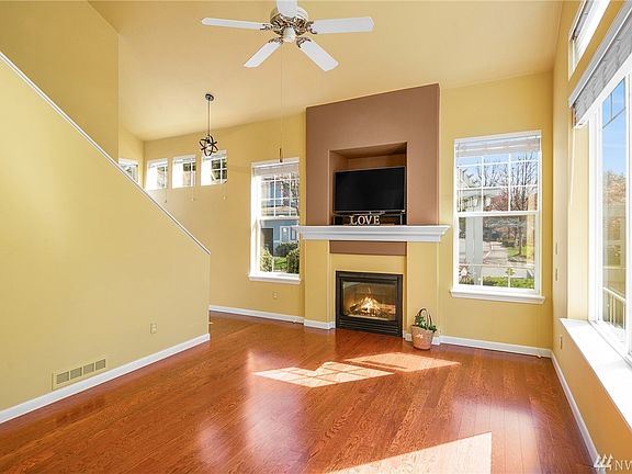 Everything you would want in a home! Lots of natural light & vaulted ceilings create a positive living space. Three bedrooms including master w/5-piece master bath. Open concept kitchen, dining & living room. Separate utility room. Hardwoods on main, stairs & upper hallway. Gas fireplace & radiant heating. Beautiful & private backyard setting. Two car garage w/storage space. End unit. No rental cap. Good schools & easy access to shopping & highways makes this an ideal location.