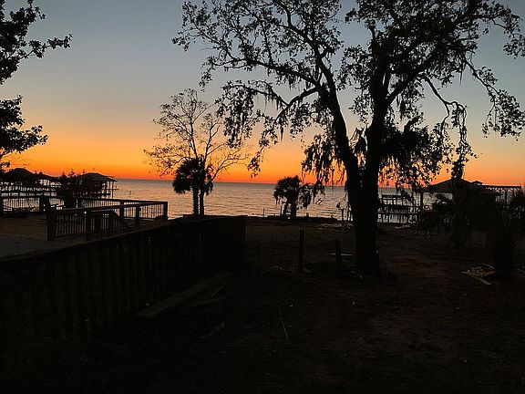 Has a wrap around porch.Beautiful sunsets, cool breezes watching the seagulls and the Dolphins swim by. Quite peaceful safe area. Great school district