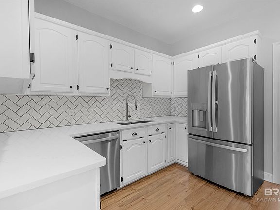 Thoughtfully designed with both everyday comfort and effortless entertaining in mind, this spacious home offers a functional layout and refined finishes throughout. Situated just 10 minutes from downtown Fairhope, local restaurants, grocery stores, and stunning bay views, the location pairs convenience with quiet retreat. The main level features beautiful wood floors, abundant natural light, and a flowing layout that connects the living room—with soaring ceilings—to the kitchen and informal dining area. The kitchen showcases a striking tile backsplash, quartz countertops, and updated fixtures that enhance both style and functionality. The primary suite is located on the main floor, offering privacy and ease, while three additional generously sized bedrooms are located upstairs. A large bonus room provides incredible flexibility—ideal for a home office, guest suite, gym, media room, or creative studio. Plush carpet upstairs adds warmth and comfort, and ample storage can be found throughout the home. Outdoors, enjoy a private backyard designed for relaxation and entertainment. The sparkling swimming pool is surrounded by an expansive patio and anchored by a large gazebo—perfect for outdoor dining or shaded lounging. Every detail of this home has been curated for those who value space, versatility, and style—all in a prime Fairhope-area location. Roof is Fortified (2021) and hot water heater (2023). Buyer to verify all information during due diligence.