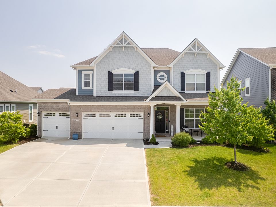 Welcome to Scofield Farms in Westfield. This turnkey 4 BD / 2.5 BA Glendale floor plan has lots of upgrades. A beautifully landscaped front yard with covered front porch. A chef's kitchen w/ large island w/ granite countertops and beautiful laminate wood floors downstairs. Stainless steel appliances. A huge kitchen pantry. A mud room w/custom built storage system. Gas fireplace in great room. New carpet upstairs. Upstairs is the owner's suite w/ large walk-in closet, tray ceiling, & huge walk-in shower. An upstairs loft is the perfect 2nd family room. Plus 3 large bedrooms upstairs. Upstairs laundry! Concrete patio and fully fenced backyard. 3 car finished garage. Association pool and playground. Award winning Washington-Woods Elementary!