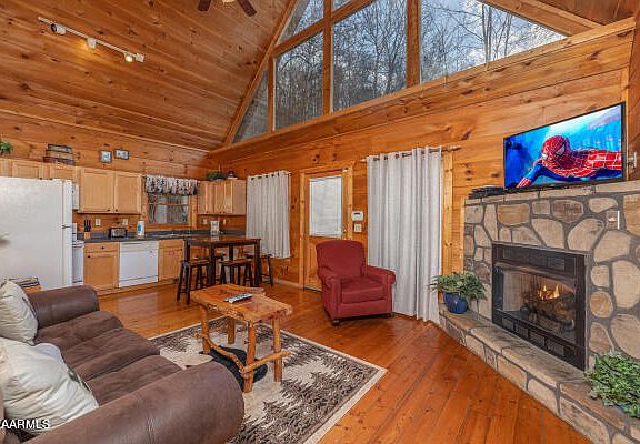 This beautiful custom built one-bedroom, one bath log cabin - minutes from all the action was built for ''Just You and Me Baby''. This unique mountain log cabin has all the amenities you could ask for or need in a Smoky Mountain getaway, with a fully equipped kitchen, pool table, gas fireplace, Jacuzzi tub, hot tub, queen sleeper, washer & dryer, custom king size log bed and more. The perfect place for a romantic getaway with that someone special, or a quick weekend away from it all. A great cabin at a great price, don't miss out!