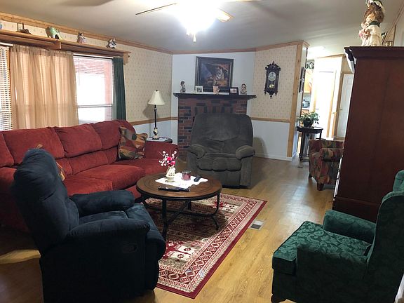 2 private acres. Circular driveway. Level land beautifully treed w/creek in back of property w/wooden foot bridge. Underground utilitiesHome has been renovated - New Kitchen,floors and bathrooms.the second mobile home on the property can be negotiated with the owner of it. The second mobile home has a separate septic tank to it.So the property can have two mobile homes on it.