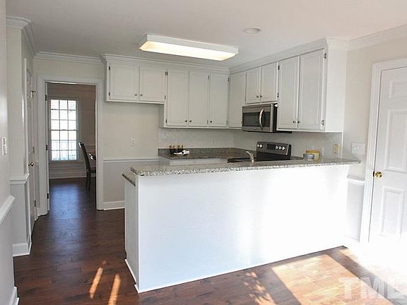 SO much natural light in this gorgeous home in sought-after Charleston Village. New hardwoods in entry, DR AND kitchen. New nylon carpet & fresh paint throughout. Granite counters in kitchen and every bath. Tiled bath and laundry room floors. Stainless. 3 BR w/bonus or 4 BR - your choice. Deck, 2-car garage, flat driveway, community pool, basketball space, and clubhouse. Gas log fireplace. DR wainscoting. Room to garden. Great backyard views. 24 min to NC State, 17 to RTP, and 6 to Target and Starbuck's!