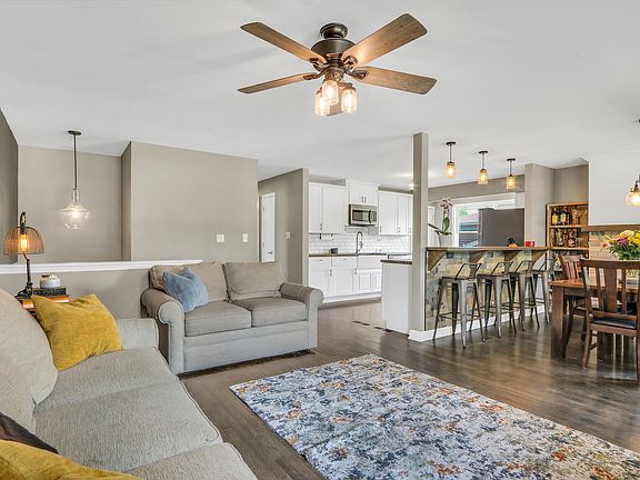 What a GEM! Beautiful lush yard with incredible play/picnic space! STUNNING Kitchen remodel with new cabinets, SS appliances, designer lighting, subway tile backsplash, farmhouse sink, butcher block prep space, custom breakfast bar & gorgeous hardwood floors! Wide OPEN floor plan lets you entertain in style! Light that fireplace and serve up an incredible dinner for your family/guests. Let the teens go hang out in the oversize family room that offers privacy from the main living area. Primary bedroom with wall of custom closets & private bath. Guest bedrooms share full UPDATED hall bath. More of those gorgeous hardwood floors! Additional bedroom and office/gym/craft room ~ flex space in the ENGLISH finished lower level ~ full bath rough in ready for you! No carpet in this house! Beautiful Interior and Fabulous Yard! Come take a tour ~ we'll leave the lights on for you!